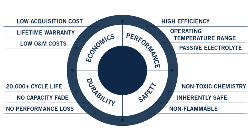 3. Minimal to no O&M. Our technology incorporates environmentally friendly materials so that you don’t need hazmat permits for transport, HVAC for cooling, costly fire suppression requirements, no maintenance battery module design, or an end-of-life chemical incineration plan. We’ve kept our EW™ clean and simple.
